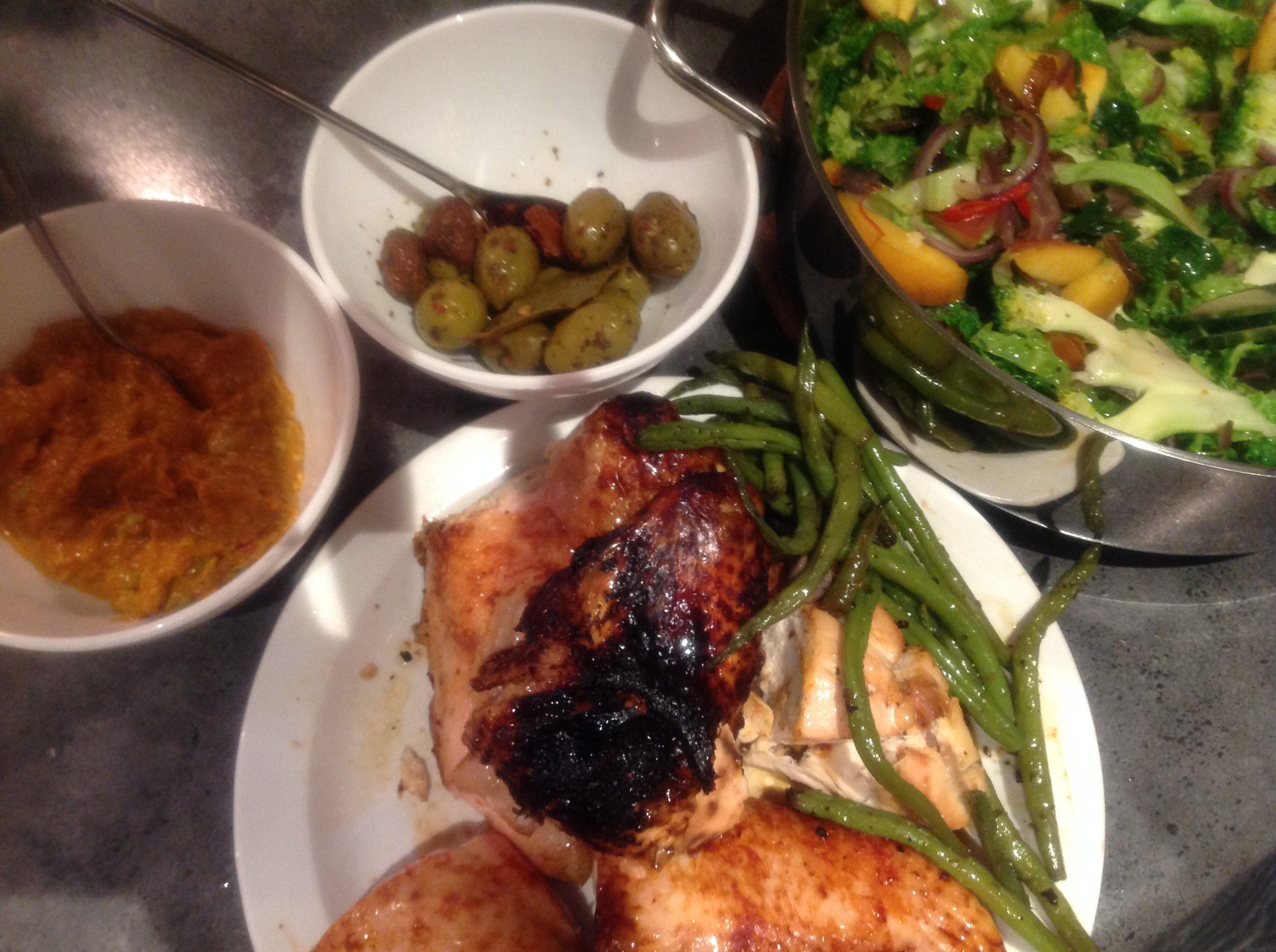 Allan grillede en hel kylling i sommerhuset og vi tog den anden halve med hjem til søndags aftensmaden.